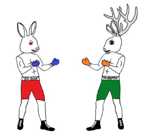 The pugilists were chosen and the legendary battle between Hare "The Big Bear" Rabbit and Jackson "Jaw Dropper" Jackalope was about to be chiseled into history.